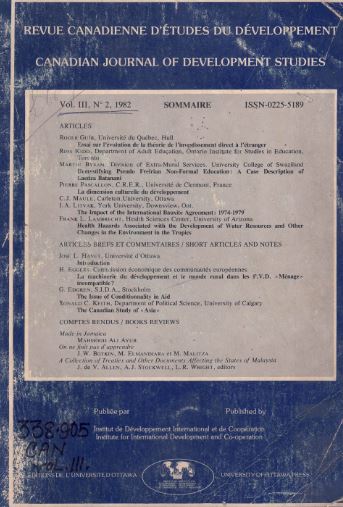 REVUE CANADIENNE DETUDES DU DEVELOPPEMENT CANADIAN JOURNAL OF DEVELOPMENT STUDIES